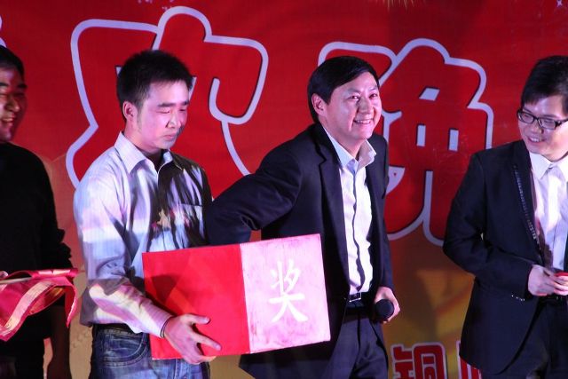 今年,在公司領導的支持下,增發了50多個幸運獎,大大提高了中獎率,也為新年討個好彩頭。有獎猜猜猜環節讓全場達到一個小高潮,猜歌、猜圖片,猜成語讓場上場下互動起來了,知道答案的觀眾高高地舉起手,一個個都恨不得站桌子上,好讓主持人把話筒遞過來,讓自己說出答案,小孩子們更是感興趣,都跑出席位,來到臺前爭搶機會說答案,他們除了想告訴大家,我聰明,知道答案之外,其實心里惦想著待會能從錢箱里抓出多少錢,醉翁之意不在酒,在閃亮亮的硬幣啊。